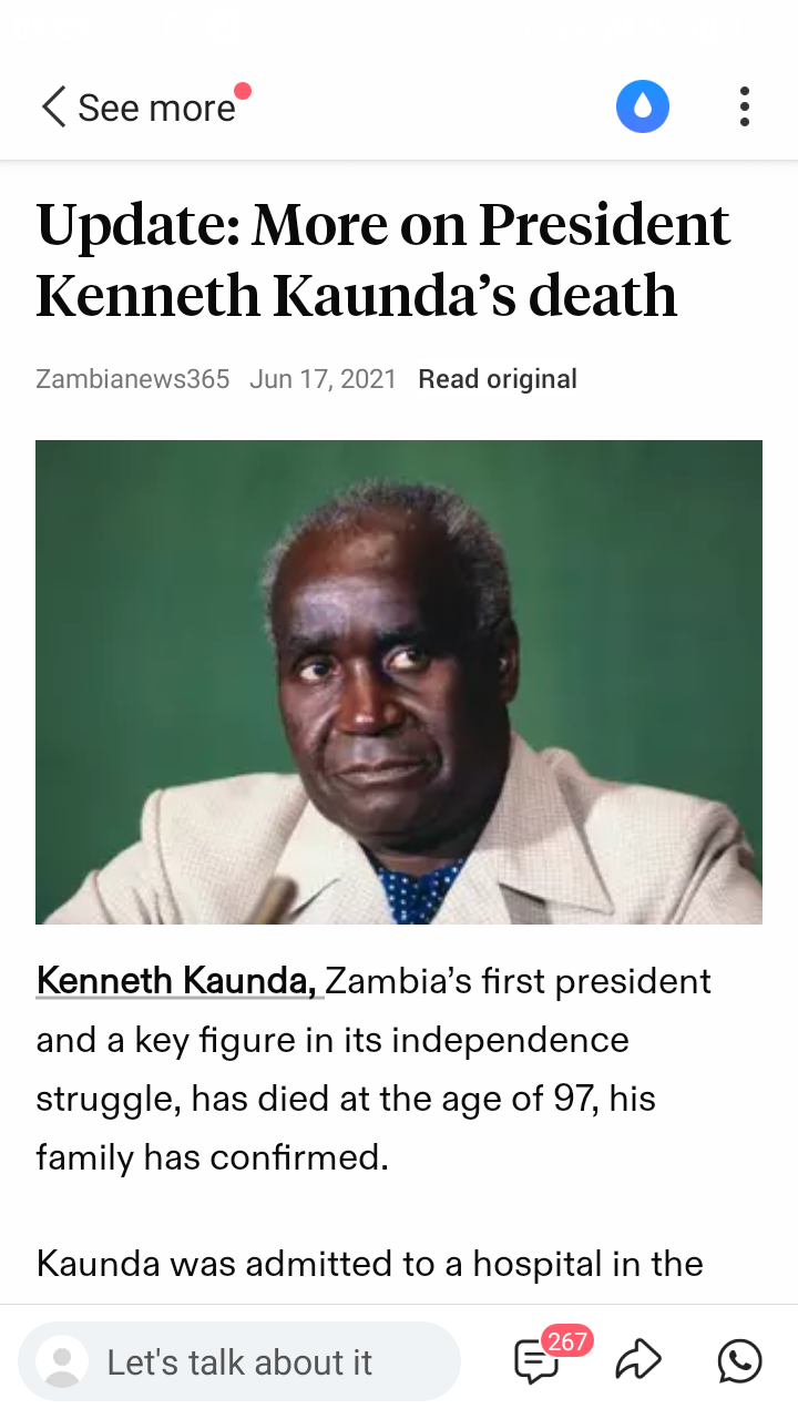 It’s not only Zambians who have lost a great leader, he was the one last pillar of the Southern Africa. This is as well a great loss to the continent for it has not been long since we lost prophet #TBJoshua, and now it’s Zambia’s Dr Kenneth Kaunda.